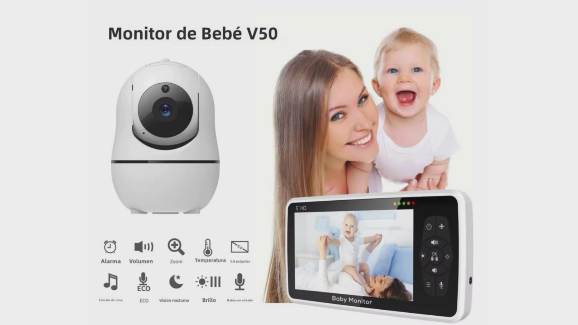 - Pantalla LCD de 5 pulgadas: Visualiza a tu bebé con claridad en una amplia pantalla en alta definición.